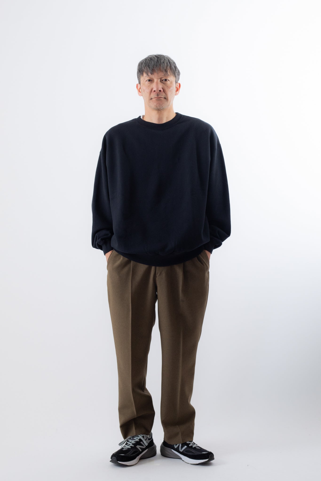 世界初のスウェットを作ったラッセルアスレチックのスウェットを イメージした、スタンダードベーシックなクルートレーナー。 身幅や袖幅はゆったり、裾や袖口のリブを効かせて、膨らみのあるシルエット。 圧倒的な軽さと柔らかな着心地が特徴のコットン100%裏起毛素材。