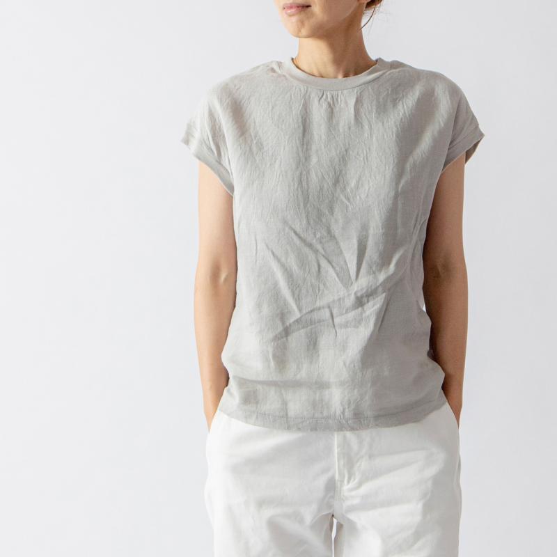 細番手リネンを使用しているので軽くて清涼感があり、フレンチリネン特有の光沢も兼ね備えた麻素材。